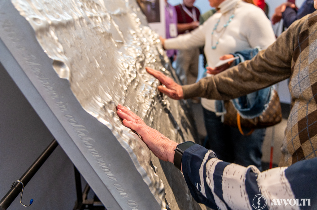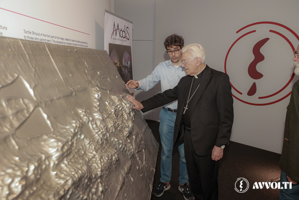 Uno speciale plastico del Telo, con la riproduzione in rilievo dell’impronta dell’Uomo della Sindone, consente anche ai non vedenti di conoscerne, attraverso il contatto tattile, i dettagli.